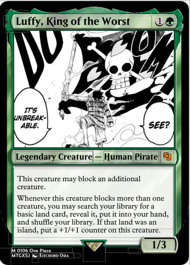 As a design challenge, I set out to make a magic the gathering set using manga published in Shonen Jump. Currently this is a work in progress.
